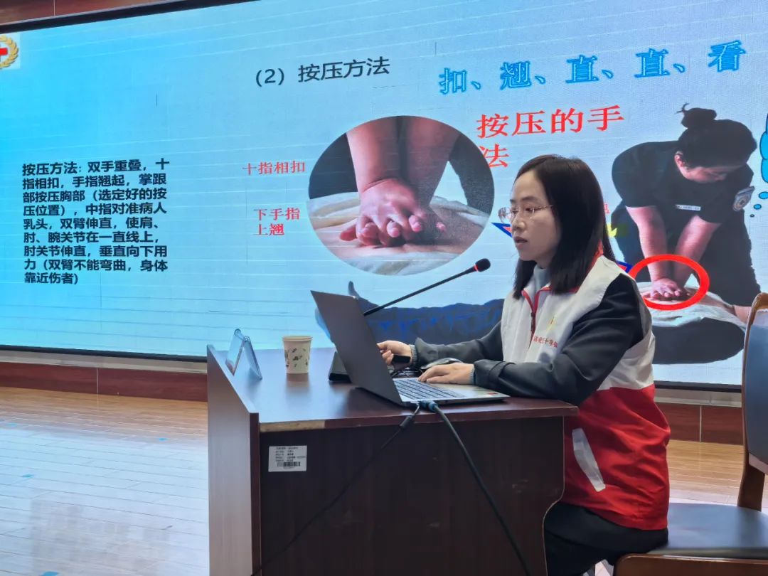 活动中,区红十字会为困难家庭学生代表发放了助学金,并围绕心肺复苏操作流程、自动体外除颤器(AED)的使用原理、心肺复苏的正确步骤等方面进行了专题培训和实操演练。