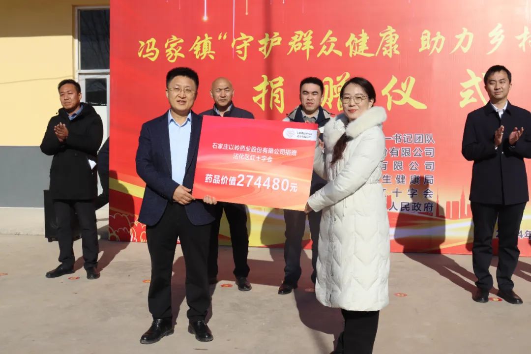 捐赠仪式由镇党委书记郑秀辉主持,冯家镇省派第一书记团队代表吴涛致辞;石家庄以岭药业股份有限公司山东区域经理高晶讲话;石家庄以岭药业股份有限公司向沾化区红十字会捐赠药品;沾化区红十字会向省法院派驻冯家镇第一书记帮扶村捐赠药品。