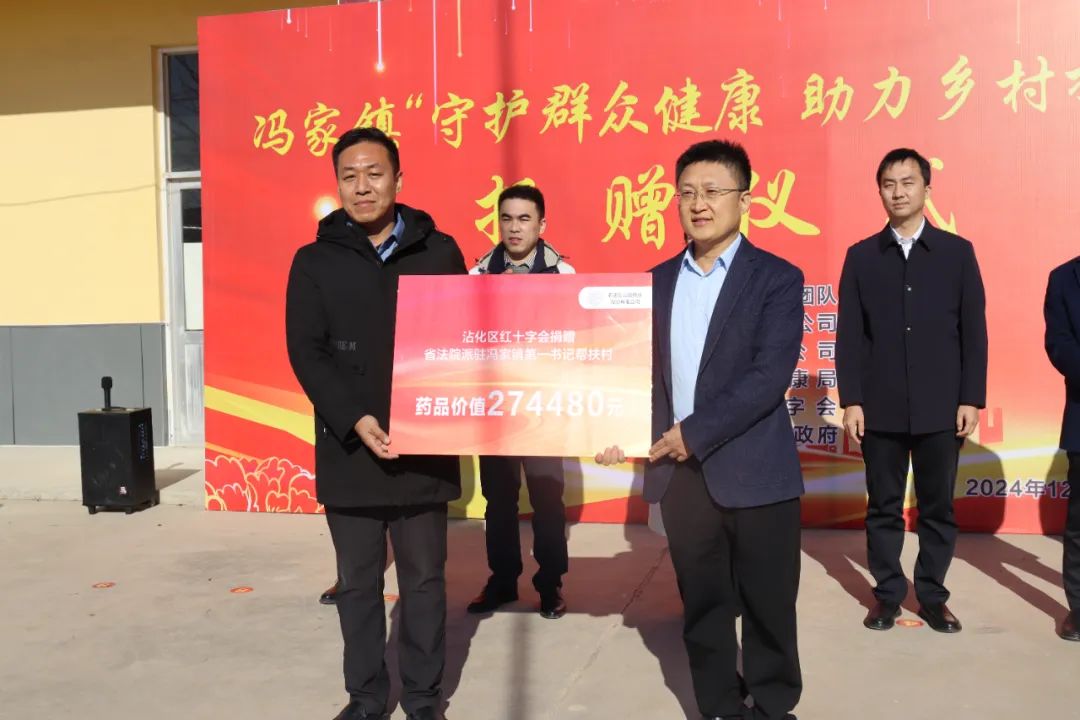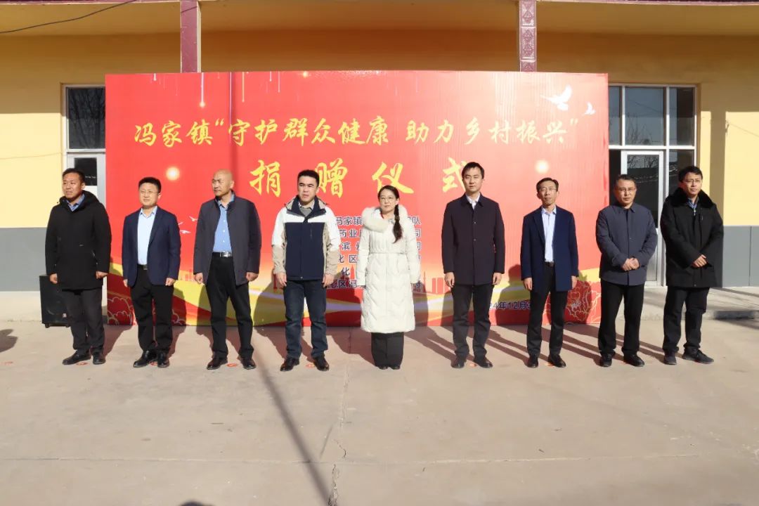 12月3日,沾化区冯家镇举行“守护群众健康 助力乡村振兴”捐赠仪式。石家庄以岭药业股份有限公司山东区域经理高晶,石家庄以岭药业股份有限公司滨州地区经理张鹏飞,国药控股滨州有限公司高兴平,国药控股滨州有限公司时寅军,区委副书记、区驻村第一书记和工作队工作专班牵头负责人赵建辉,区卫生健康局党组书记、局长、区中医药管理局局长齐洪升,区红十字会党组书记、常务副会长许鹏涛,镇党委书记郑秀辉,省高院派驻冯家镇王尔庄村第一书记梅贺、北集村第一书记邵学斌、南堼村第一书记吴涛、刘王村第一书记赵而祥、大寨村第一书记张亚洲等参加。