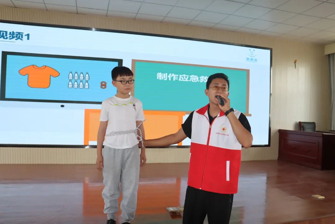活动伊始,红十字应急救护师资闫明明结合近年来发生的溺水事故案例,详细分析了溺水事故的危害性和严重后果,强调了防溺水安全教育的重要性,同时,现场进行应急救援衣制作和溺水救援的演示,他要求全体学生要牢固树立安全意识,严格遵守防溺水“六不”原则,做到远离危险水域,珍爱生命。