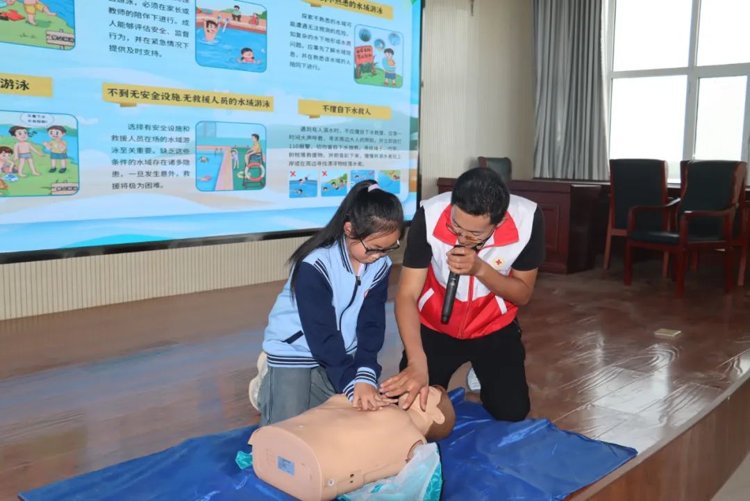 最后,红十字应急救护师资为大家进行心肺复苏现场演示,并邀请学生亲自体验,针对溺水情况进行相关急救措施教学,让他们更加清楚地了解急救技巧。同学们纷纷表示,今后将以实际行动践行自己的誓言,时刻牢记防溺水安全知识,远离溺水危险。